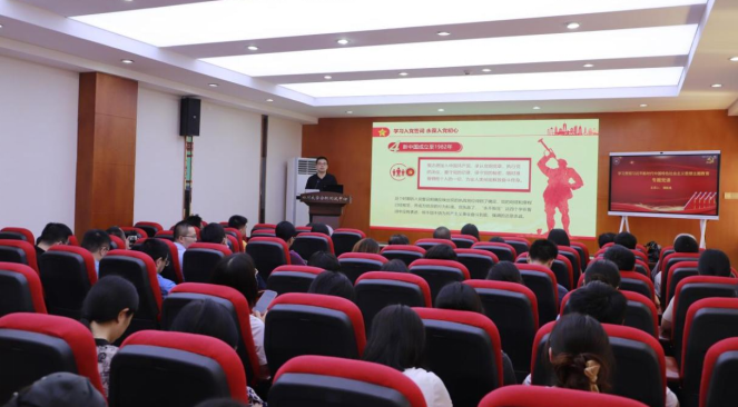 表彰结束之后,中心党总支副书记谭新禹以《重温入党誓词、坚定理想信念、争做优秀党员》为题讲授了专题党课。党课回顾了入党誓词随时代的变化和调整,以革命先烈和中心优秀党员先进事迹为例,结合主题教育“学思想、强党性、重实践、建新功”的总要求,对全体党员提出了“坚定理想信念、争做优秀党员”的目标,并带领全体党员一起重温入党誓词,希望中心党员铭记入党誓词、勇扛历史使命,向心凝聚、向难攻坚,干在实处,用实干实绩书写奋发有为的人生篇章。