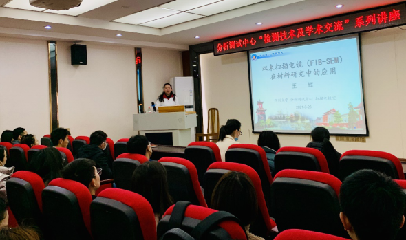 作为党史学习教育活动的重要组成部分,分析测试中心“分析测试技术及学术交流”系列讲座于3月26日上午开讲。第一讲题为“双束扫描电镜(FIB-SEM)在材料研究中的应用”,主讲人为中心党员示范岗、扫描电镜组组长王辉同志。来自校内外同行及师生共计40余人参加了此次讲座。