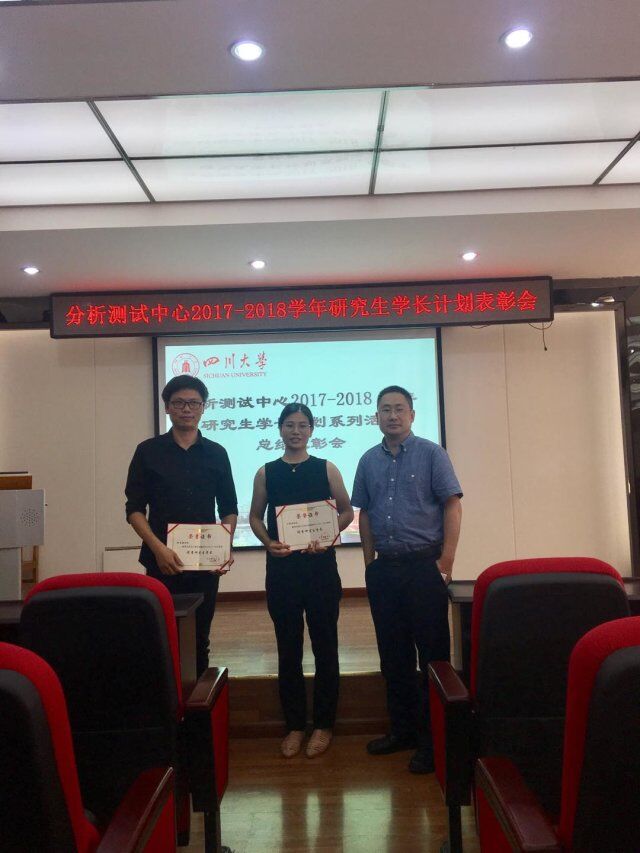 经中心研究生学长自由申请、学生工作组讨论,结合全体研究生的民意测评,2015级分析化学博士生徐富建、2015级高分子材料博士生付聪丽荣获中心2017-2018学年度优秀研究生学长。两位同学首先对自身工作开展情况、收获和体会进行了分享。随后,吴兰副书记总结并肯定了学长工作和取得的成绩,对新申报第二批研究生学长的同学提出了要求和希望。吕弋主任为获奖的两位学长颁奖并表示祝贺,希望中心更多更优秀的研究生积极参与学长计划,营造出更好的科研学习氛围,不断提升科研创新能力,取得更多高水平科研成果。