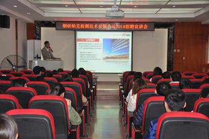 为进一步切实做好中心毕业生就业工作,积极为中心研究生搭建就业平台、提供更多有针对性的就业资讯,由中心学生工作组组织和协调、中心研究生分会具体负责、中国钢研科技集团全资子公司--钢研纳克检测技术有限公司作为用人单位的此次宣讲和招聘活动于2017年11月14日上午在东区333会议室举行,中心全体研究生及学校化学、材料等相关专业部分毕业生参加了此次活动。