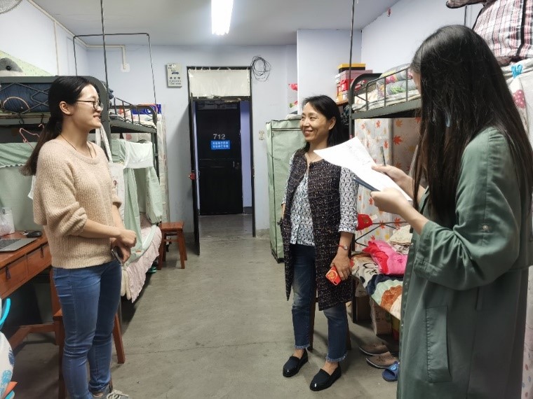 为更好地了解中心研究生在校学习生活和科研状况、进一步排查宿舍安全隐患,9月30日晚18:00,分析测试中心分管学生工作的副书记吴兰老师与团支部指导老师张亮以及2020级博士研究生班长胡昌佳同学一起,对中心各年级研究生宿舍进行了走访和检查。