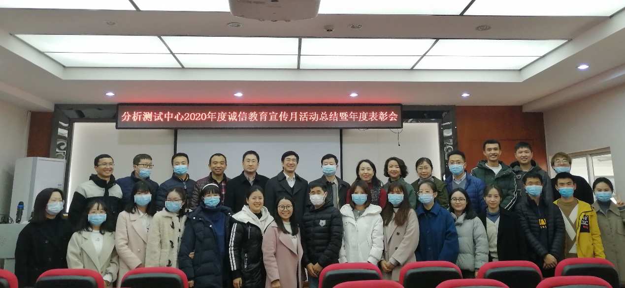 2021年1月22日,分析测试中心在333会议室召开了2020年度诚信教育宣传活动总结暨年度表彰大会。中心党政领导、中心全体研究生、学生工作组老师以及导师代表出席本次大会。