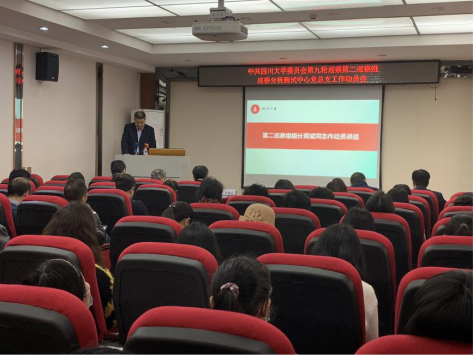 第二巡察组组长蒋斌同志作动员讲话,对分析测试中心对巡察工作的高度重视和精心准备表示感谢,并提出三点意见。一是认真学习领会,把握精神要义,做到思想和行动统一到学校对巡察工作的决策部署上来;二是突出巡察重点,明确工作任务,突出“四个落实”,抓好“四个聚焦”和“四个紧盯”,坚决贯彻落实政治巡察各项要求;三是依规依纪开展,加强组织协调,切实保证巡察工作扎实有序推进。会上,他就巡察工作安排和信访渠道等情况作了说明。