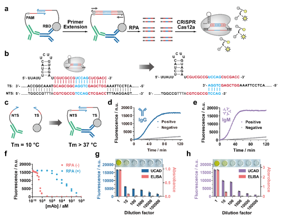 该研究“A CRISPR-based ultrasensitive assay detects attomolar concentrations of SARS-CoV-2 antibodies in clinical samples”发表在Nature Communications上,yl23455永利集团为第一单位,分析测试中心唐娅楠副研究员和华西医院泌尿外科宋涂润博士为本文并列第一作者,化学学院李峰教授和华西医院泌尿外科林涛主任为本文共同通讯作者。
