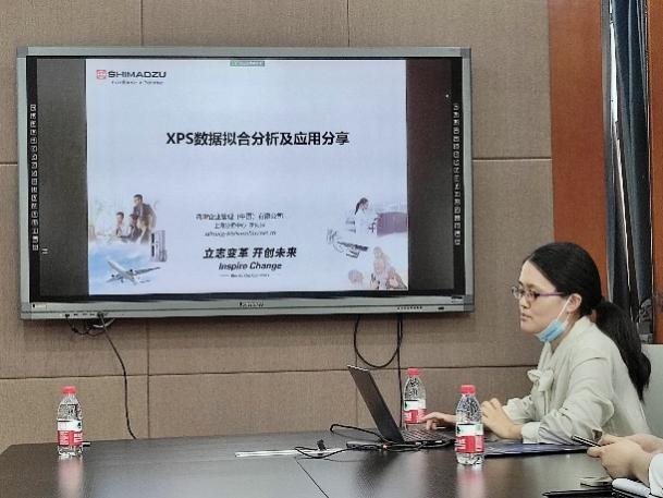 应用工程师崔园园博士随后介绍了“XPS数据分析及应用进展”,包括XPS技术原理简介及适用范围、XPS数据拟合分析基本原则及复杂元素拟合实例以及XPS技术在能源材料领域的应用研究进展等。 最后,工程师和师生就XPS分析检测中遇到的问题进行了深入的交流讨论。