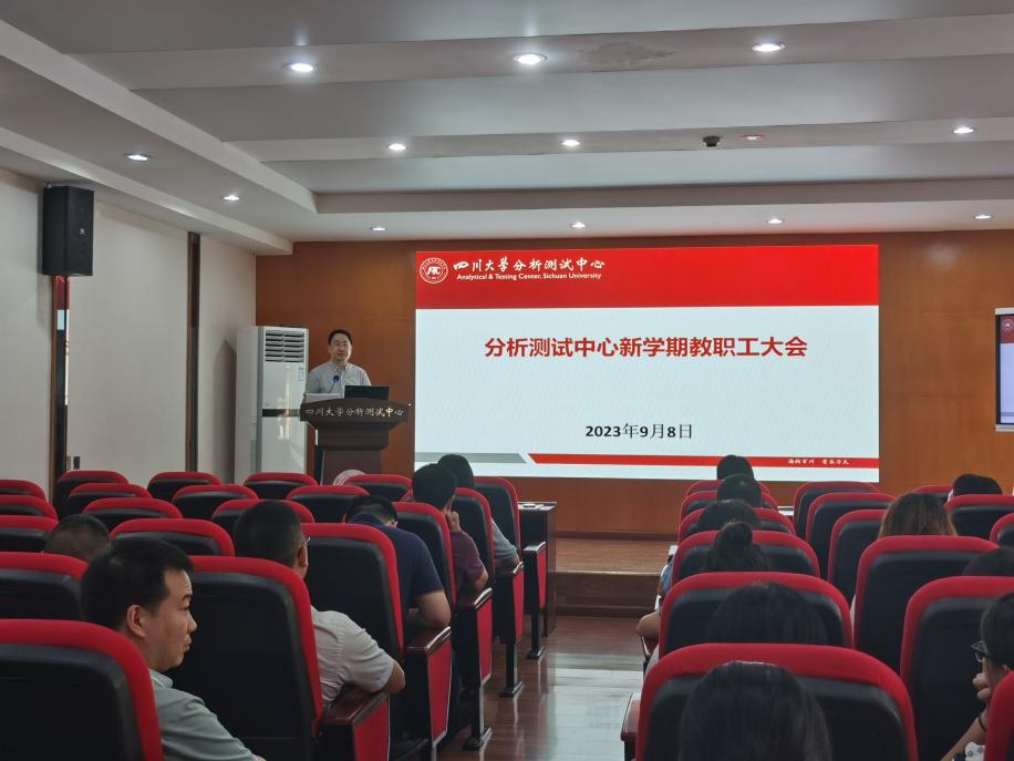 2023年9月8日上午,分析测试中心在333会议室召开全体教职工大会暨新学期工作布置会,传达了学校2023年下半年新学期工作布置会精神,并对中心下半年重点工作进行了安排部署。会议由中心副主任李成辉主持,中心全体教职工参加会议。