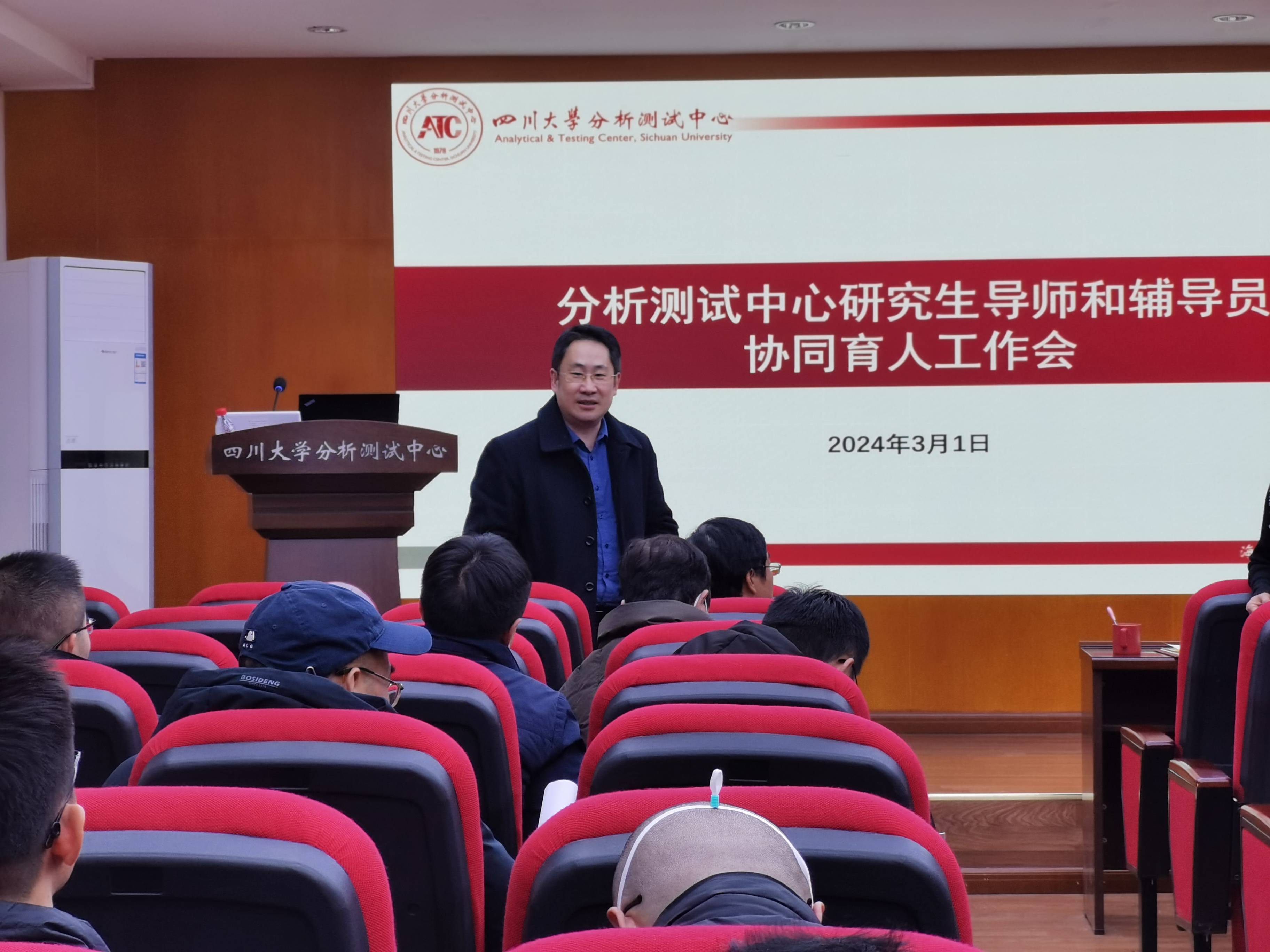 2024年3月1日下午,分析测试中心在333会议室召开新学期导师工作会,并就导师和辅导员协同育人开展了工作交流。会议由中心党总支副书记谭新禹主持,中心全体研究生导师参加会议。