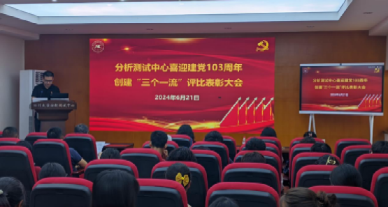 为喜迎建党103周年,6月21日分析测试中心在333会议室举行庆祝“七一”表彰大会,并进行党纪学习教育专题党课。中心全体在职教职工党员、学生党员和离退休党员代表参加大会,会议由党总支副书记谭新禹主持。