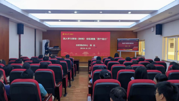 表彰结束后,中心党总支书记吴兰以“深入学习贯彻《条例》 切实增强‘四个定力’”为主题,讲授了党纪学习教育专题党课,并对部分典型案例进行了通报。她强调,中心全体党员干部要以开展党纪学习教育为契机,认真学习、深刻领会习近平总书记重要论述,学纪、知纪、明纪、守纪,营造积极健康、干事创业的政治生态和良好环境,促中心高质量发展。