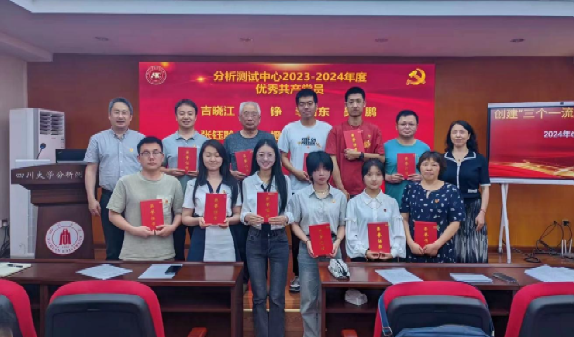 谭新禹首先介绍了2023-2024年度学校及中心“三个一流创建”活动评优表彰推荐评选情况。随后,中心党总支书记吴兰宣读荣获2023-2024年度分析测试中心“优秀共产党员”“优秀党务工作者”和“先进党支部”的名单。最后,由中心党总支书记吴兰和中心主任吕弋为获奖个人和集体颁发了荣誉证书。