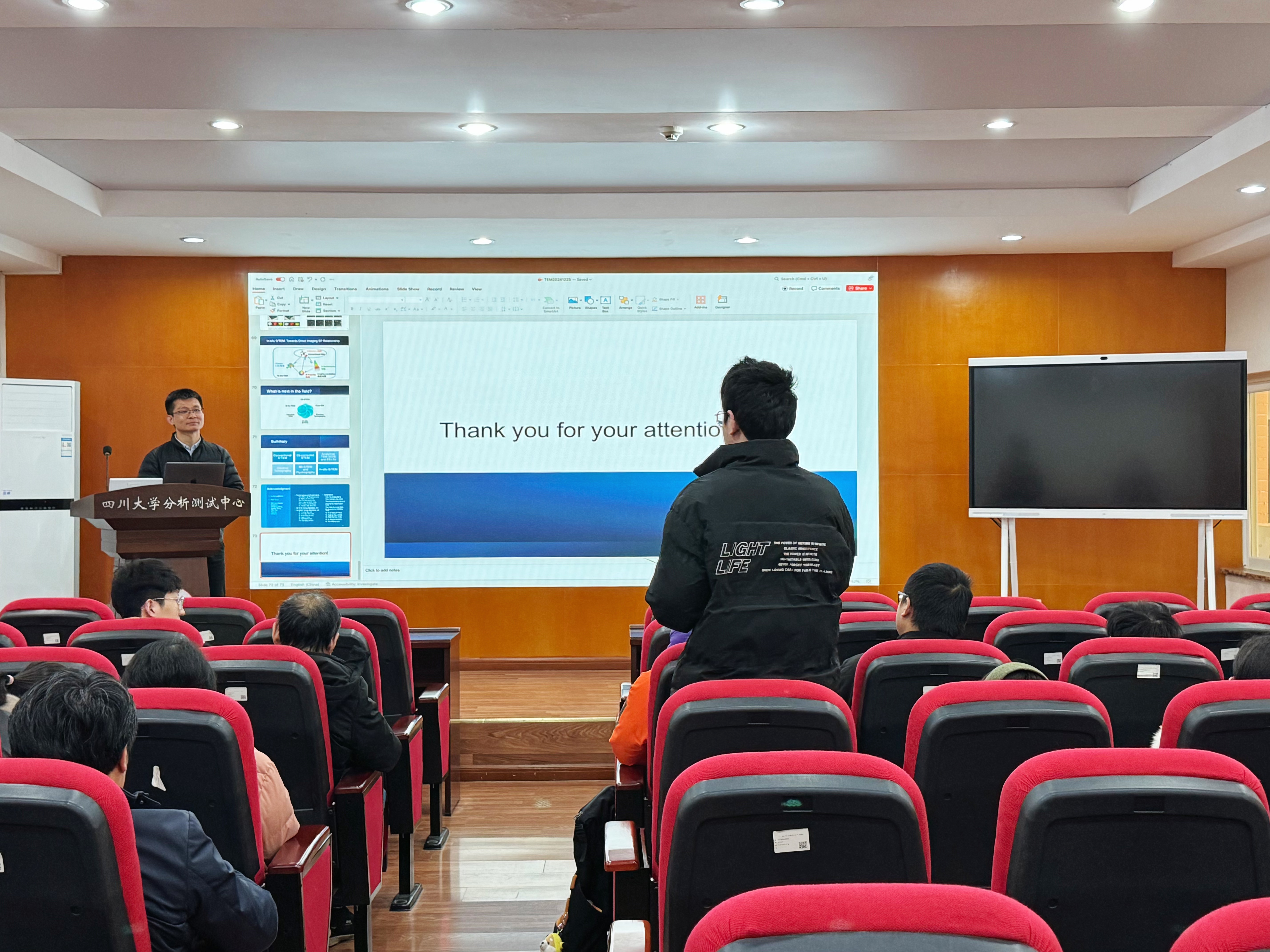 为进一步提升师生实验技术水平,打造一支高素质的实验技术队伍,更好地服务于人才培养、科学研究、技术创新和社会服务工作,我校实验室及设备管理处联合分析测试中心,于2024年12月25日在分析测试中心333会议室成功举办了“实验技术交流与仪器设备开放共享管理”系列讲座。分析测试中心谢晓滨老师以“先进透射电子显微技术及其应用”为题,围绕STEM成像原理、像差及像差矫正、电子-物质相互作用及其在STEM成像中的应用和图像分析展开了经验交流。谢老师还向在场师生展示了从传统二维成像技术到三维成像技术,直至电子显微技术的前沿领域——四维扫描透射电子显微技术的发展脉络与应用实践。此外,谢老师结合自身丰富实践经验,分享了在实际工作中遇到的典型案例,并就与会者提出的相关问题进行了深入交流与解答,赢得了师生们的广泛认可与高度评价,有效促进了实验技术知识的普及和经验的交流。