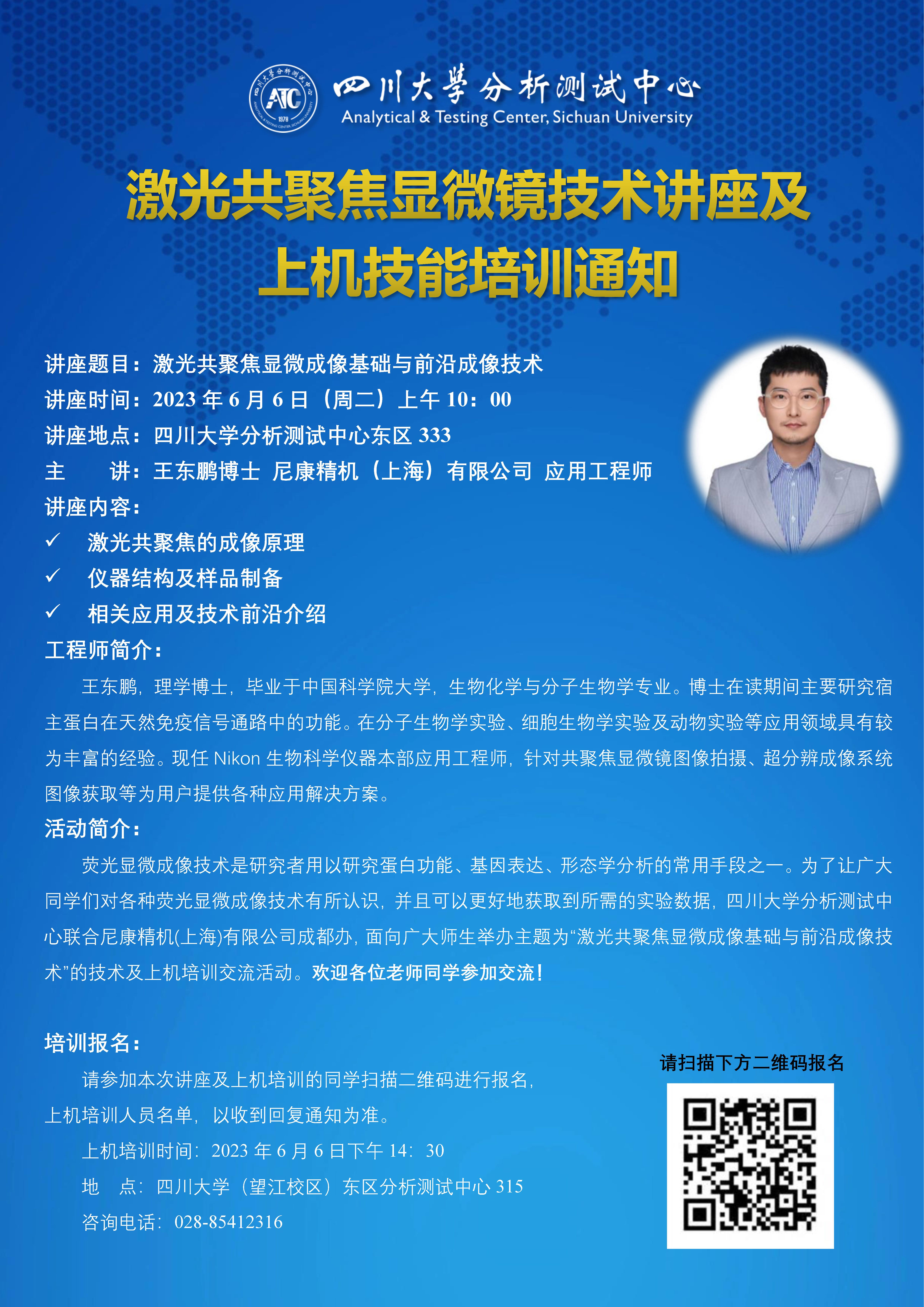 激光共聚焦显微镜技术讲座及上机技能培训通知