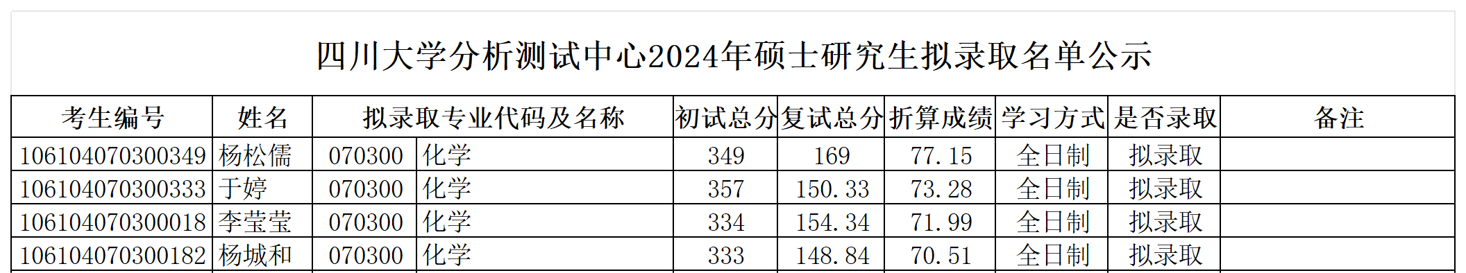 yl23455永利集团分析测试中心2024年硕士研究生拟录取名单公示