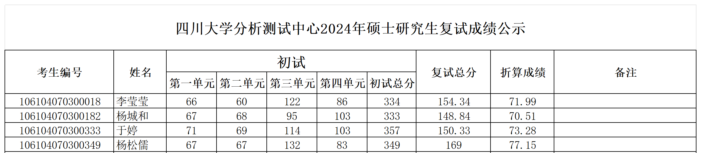 yl23455永利集团分析测试中心2024年硕士研究生复试成绩公示