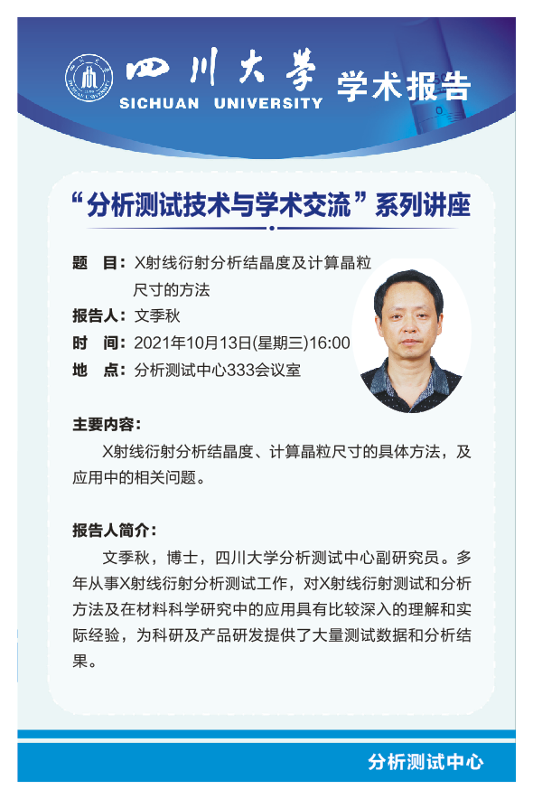 “分析测试技术与学术交流”系列讲座-X射线衍射分析结晶度及计算晶粒尺寸的方法