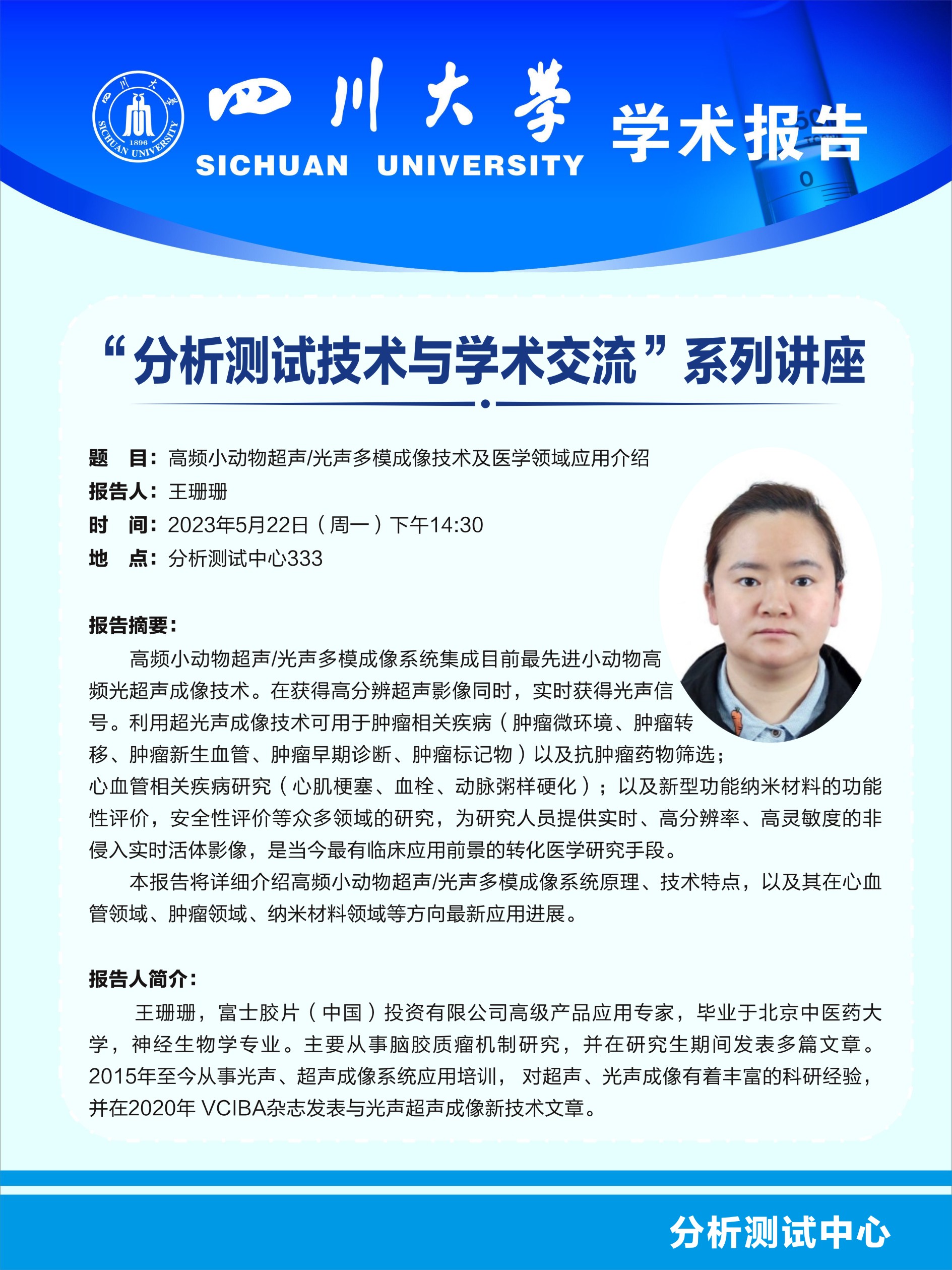 “分析测试技术与学术交流”系列讲座-高频小动物超声/光生多模成像技术及医学领域应用介绍