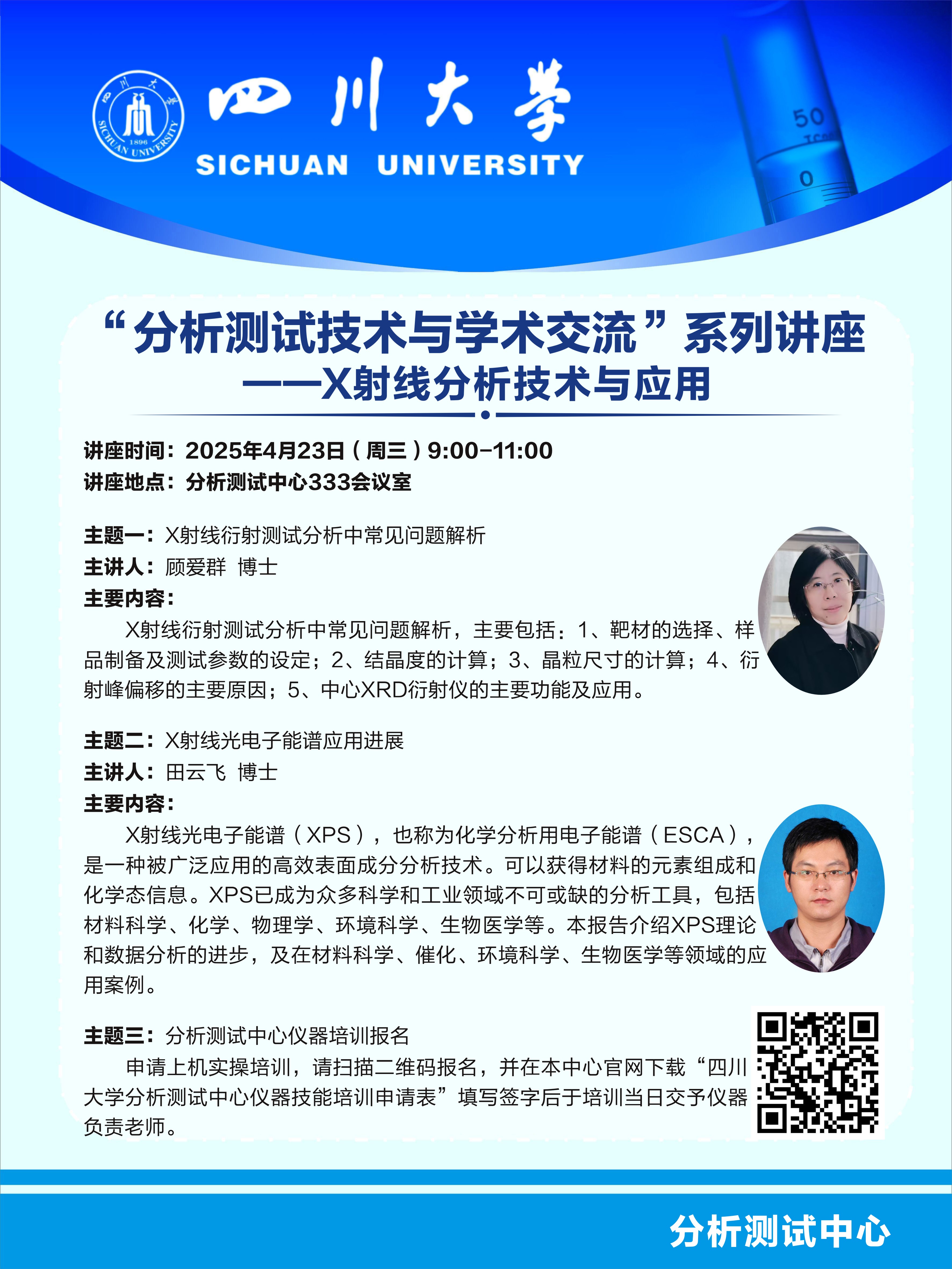 “分析测试技术与学术交流”系列讲座--X射线分析技术与应用(XRD&XPS)